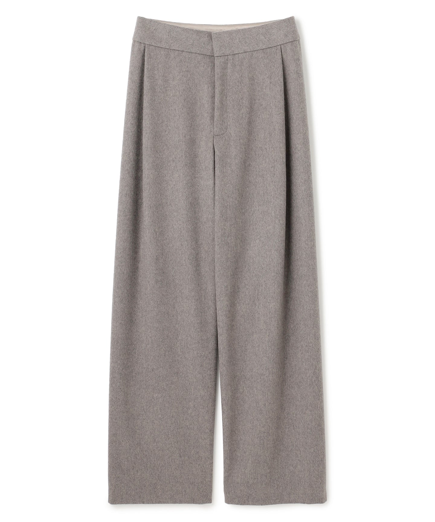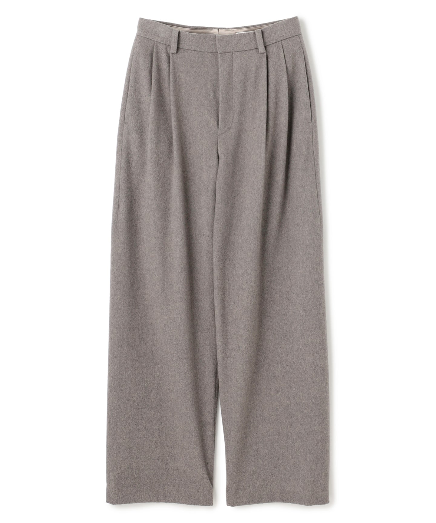 TSUTSUMUのパターンイングのWタックパンツ。マーベルト仕立ての直線的なウエストラインから落ちる深めWタックのワイドストレートシルエット。ゆったり包み込むレッグラインは心地よくマニッシュな印象を持ちながらも女性らしい1着。