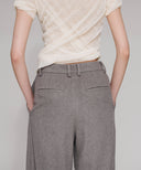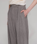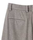 TSUTSUMUのパターンイングのWタックパンツ。マーベルト仕立ての直線的なウエストラインから落ちる深めWタックのワイドストレートシルエット。ゆったり包み込むレッグラインは心地よくマニッシュな印象を持ちながらも女性らしい1着。