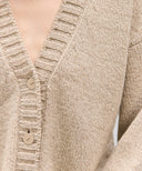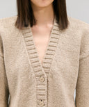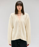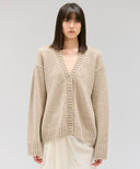 太番カシミヤの贅沢な肌触りが際立つニットカーディガン。ウエストのシェイプによって作られたシルエットはメリハリがあり立体的で女性らしい曲線を生み出している。上品な見栄えと着心地の良さを兼ね備えた1枚。