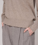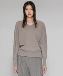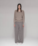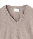 カシミヤ100%の贅沢な素材感を、ホールガーメントならではの身体を包み込むような立体的なフォルムで編み上げたVネックトップス。滑らかな肌触りと柔らかさがシンプルな佇まいに上質さを加えてくれる。身頃にさりげなく施した目立てのラインが、静かなアクセントとして奥行きを生む。ミニマルでありながら、細部にまで拘ったSCEARNを象徴するベーシックアイテムであるTSUTSUMUニット。