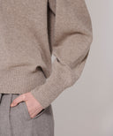 上質なカシミヤ原料を使用。ふくらみと軽さを意識した糸作りで、柔らかで軽く、しなやか、上品な光沢、独特なぬめり感があり、吸湿性に優れた素材。ホワイトカシミヤとブラウンカシミヤを使用しており、その原料をワタの状態で染めて紡績する工程までを日本国内で行っている。