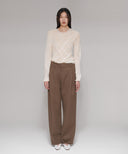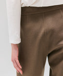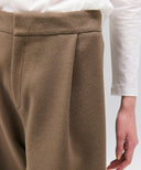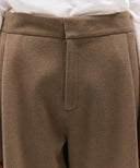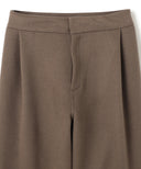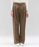 程よいゆるさのあるシルエットのタックパンツ。脇をわで仕立て、上質な質感のウールのふくらみのある素材がほんのり丸みを帯びたシルエットを生み出ている。職人が丁寧に仕立てたリバー仕立て。