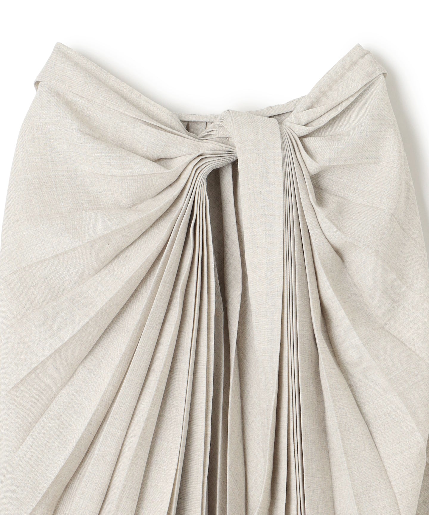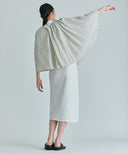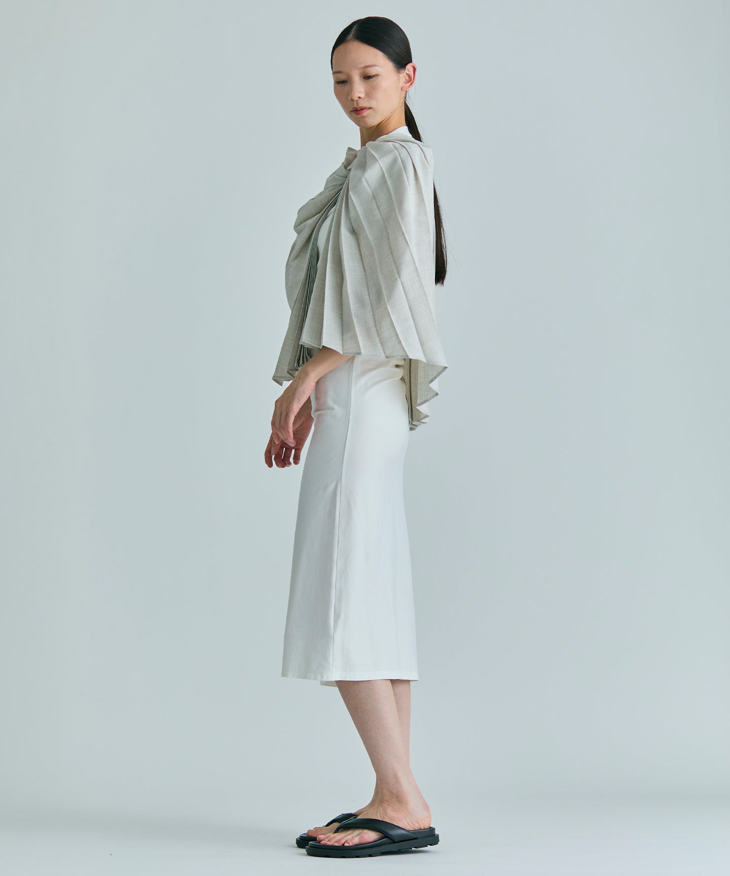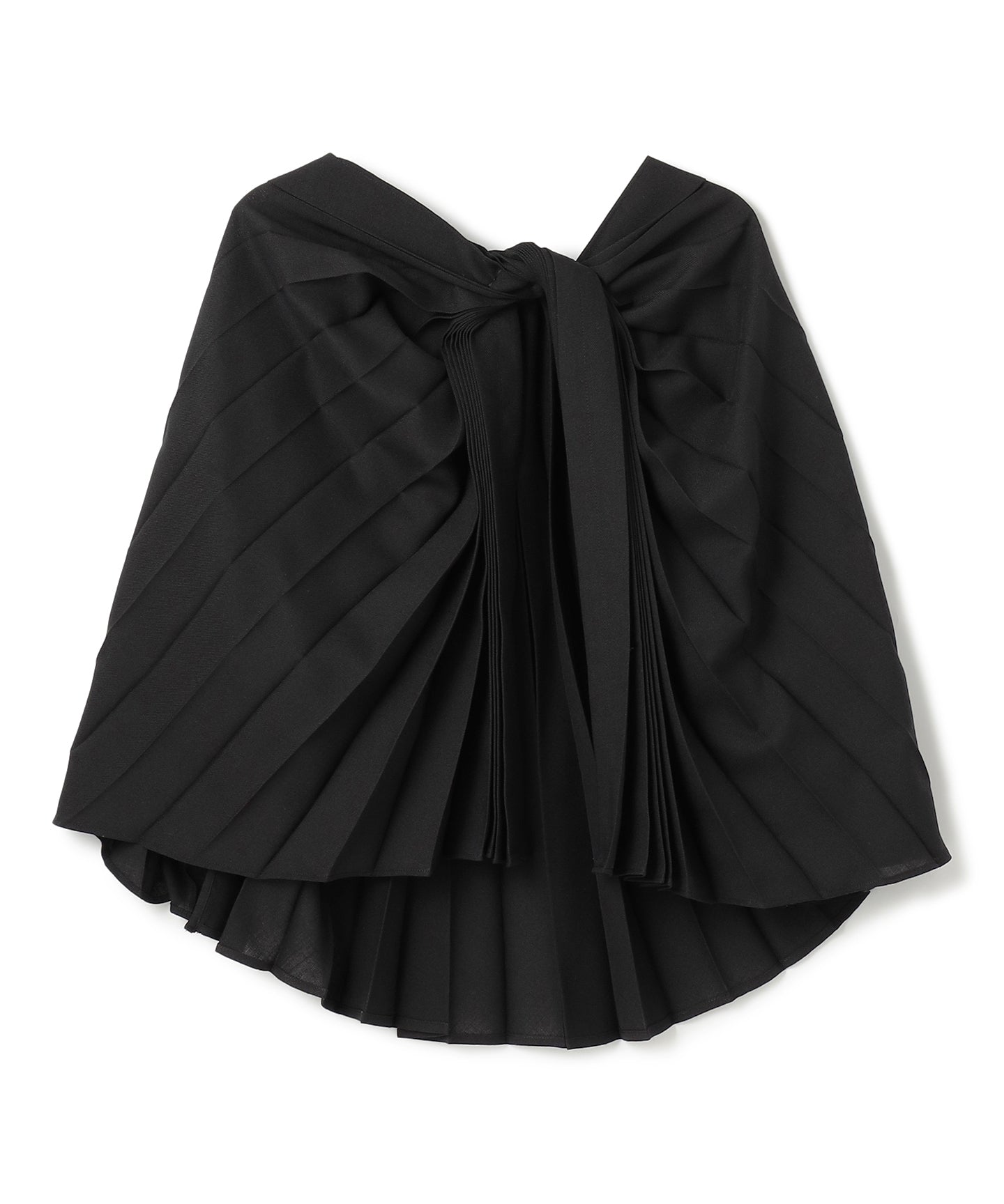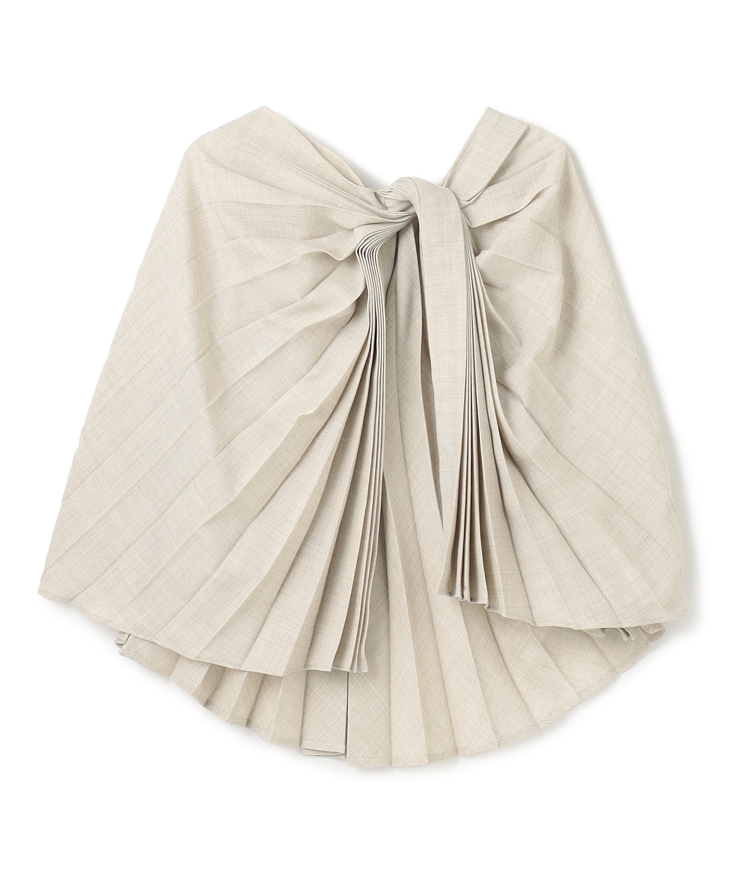 傘のイメージから生まれた、総プリーツのケープ。フロントに捻りのディテールを入れた、シンプルなコーディネートのトッピングアイテム。