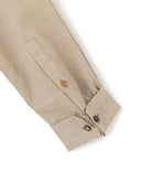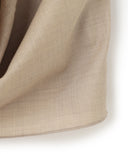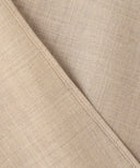 細番手のTOP(無染色の原毛の色)のウール糸に、シルクの生糸(繭から取ったままの手を加えていない糸)を巻き付ける 昔ながらの製法を再現して作った繊細な糸で織り上げた、とても軽くて美しい光沢とハリを持った素材。