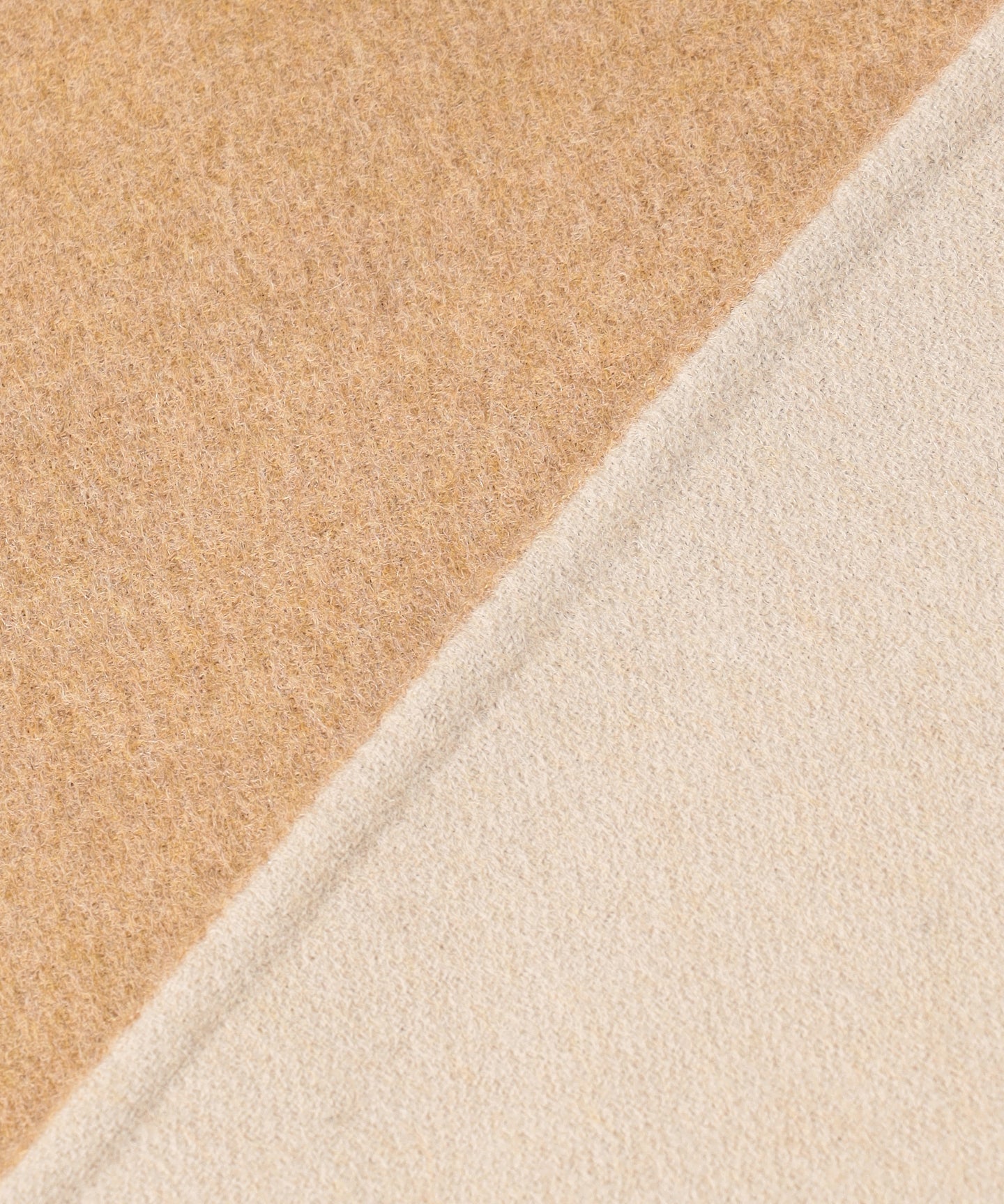 厳選された白度の高いメリノウールを丁寧に仕上げたウールダブルフェイス。ふんわりとしたふくらみと原料の良さからくる上品な肌触りが特徴。見た目以上に軽さが感じられる素材。Loro Piana産によるイタリア素材。