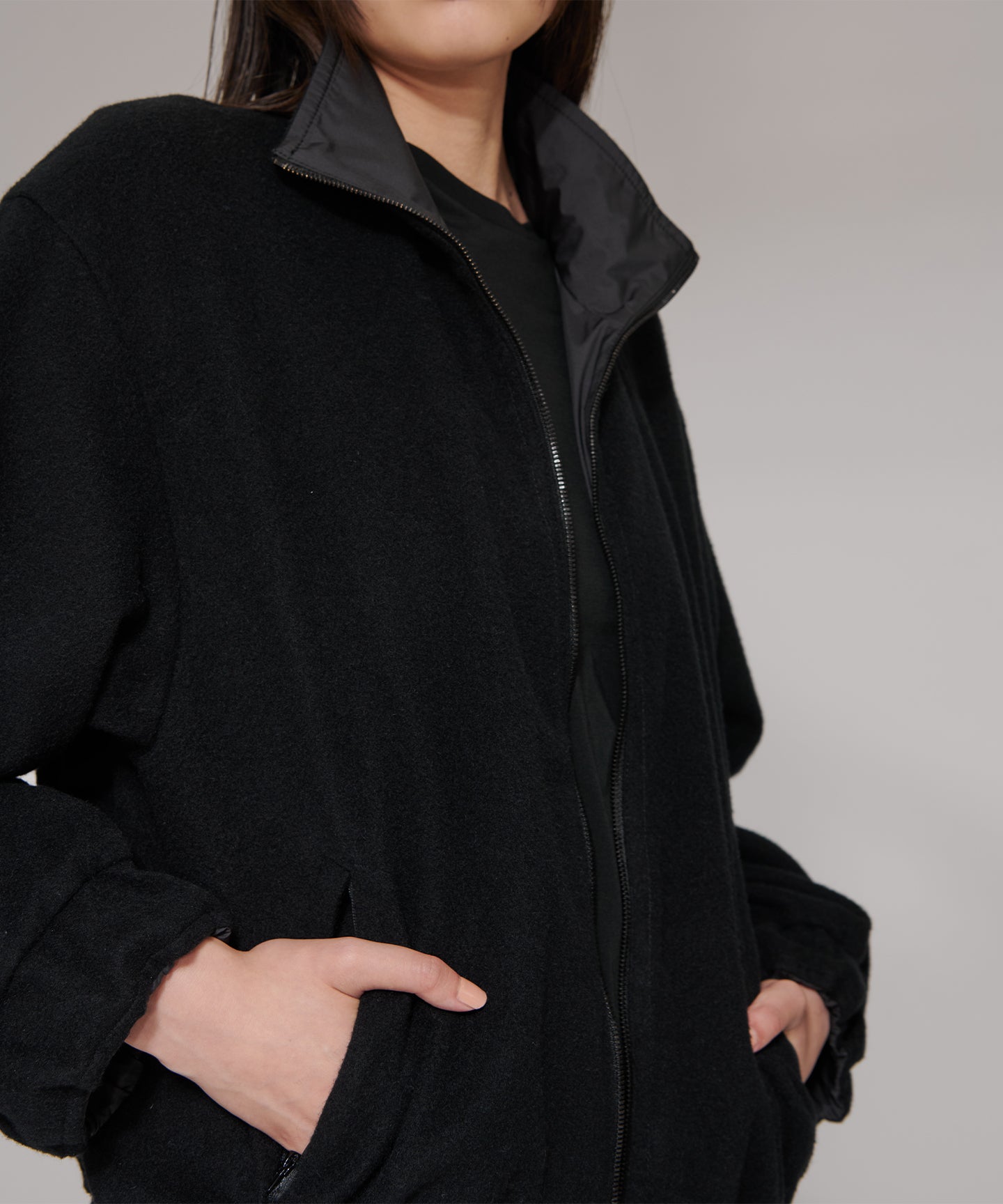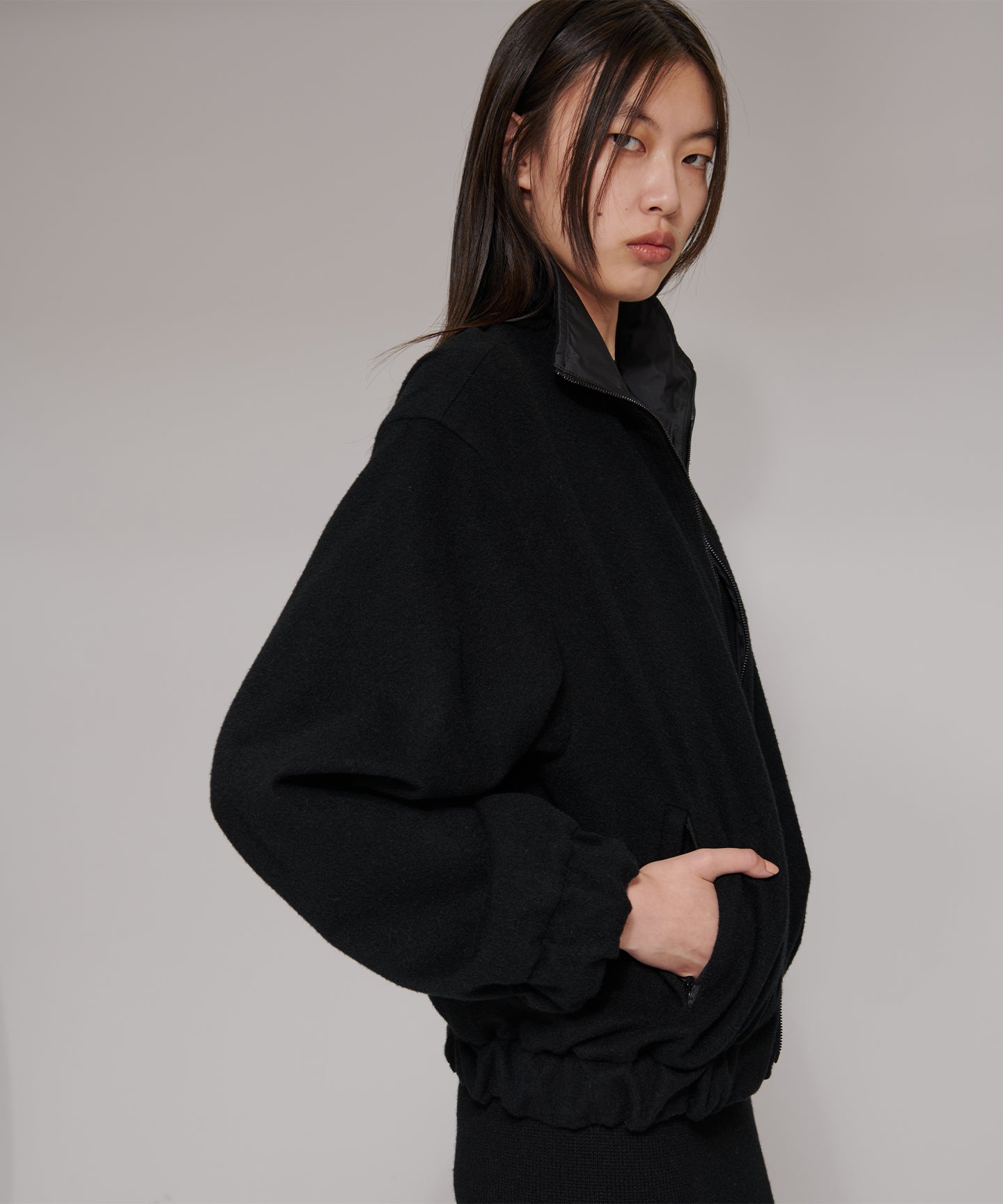 軽快なイメージのブルゾンを、上品な表情のタフタと贅沢なカシミヤフリースのリバーシブル仕立てで上質でモード感のある1着に仕立て。 空気をはらんでふわっと身体を包むような、軽くやわらかな着心地のリラックス感のあるブルゾン。