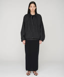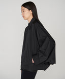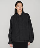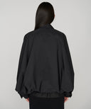 江戸時代に着用された吾妻胴着にインスピレーションを受けデザインしたブルゾン。置き姿は折り紙のように平面でありながら、袖を通すとたっぷりと空気を含み立体的なシルエットに変化します。
