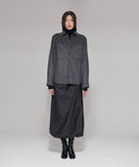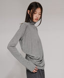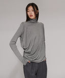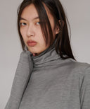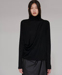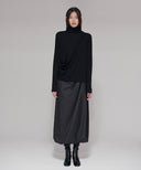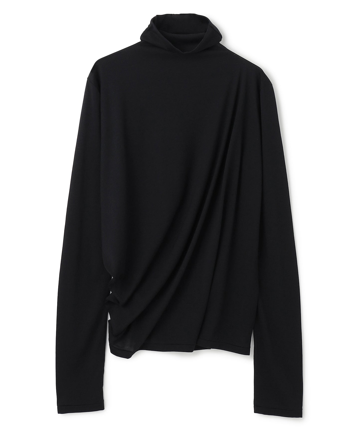 包むという所作から生まれた自然なねじれの美しさを表現したタートルネックプルオーバー。身体に沿うように優しくねじれながら生まれるやわらかな立体感のあるドレープは包みこむような柔らかな表情を生み出す。