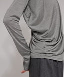 繊細な絹紡糸で編み上げたTOP天竺。絹紡糸(スパン)の微光沢とTOP糸の表情が上品なシルクジャージー素材。糸のたんぱく質が人体と限りなく近い成分であるのと、絹紡の膨らみの為、肌に優しく、滑らかなタッチの風合いが特徴。