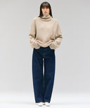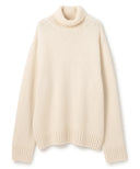 たっぷりと身体を覆うサイジングでリラックス感の中に女性らしさ漂うタートルニット。肌触りの良い太番の上質なカシミヤ素材で包み込まれるような柔らかいシルエット。ミニマルな印象を持たせた、1枚でも存在感があるニット。