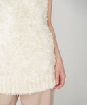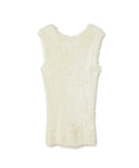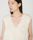 柔らかく繊細な毛羽立ちと上品な艶感を併せ持つ上質なシルクファーニット。軽やかでありながら滑らかな肌触りのテクスチャーが気品を漂わせます。ゆったりとしたシルエットに、深めに開いたVネックが女性らしい抜け感をプラスします。