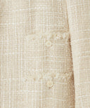 無染色のシルク、ウール、麻の極太から細番手までの天然素材を7種使用し、抄繊糸を織り交ぜたツイード。ピカノール織機を使用することで、10倍近くある番手の太さの糸を織ることが可能となり、異番手の糸が織りなす陰影が深みをもたらしてくれます。糸そのものの良さを引き出した仕上げで、天然の糸本来の光沢が上品な完全オリジナルのツイード。