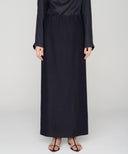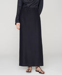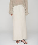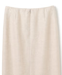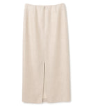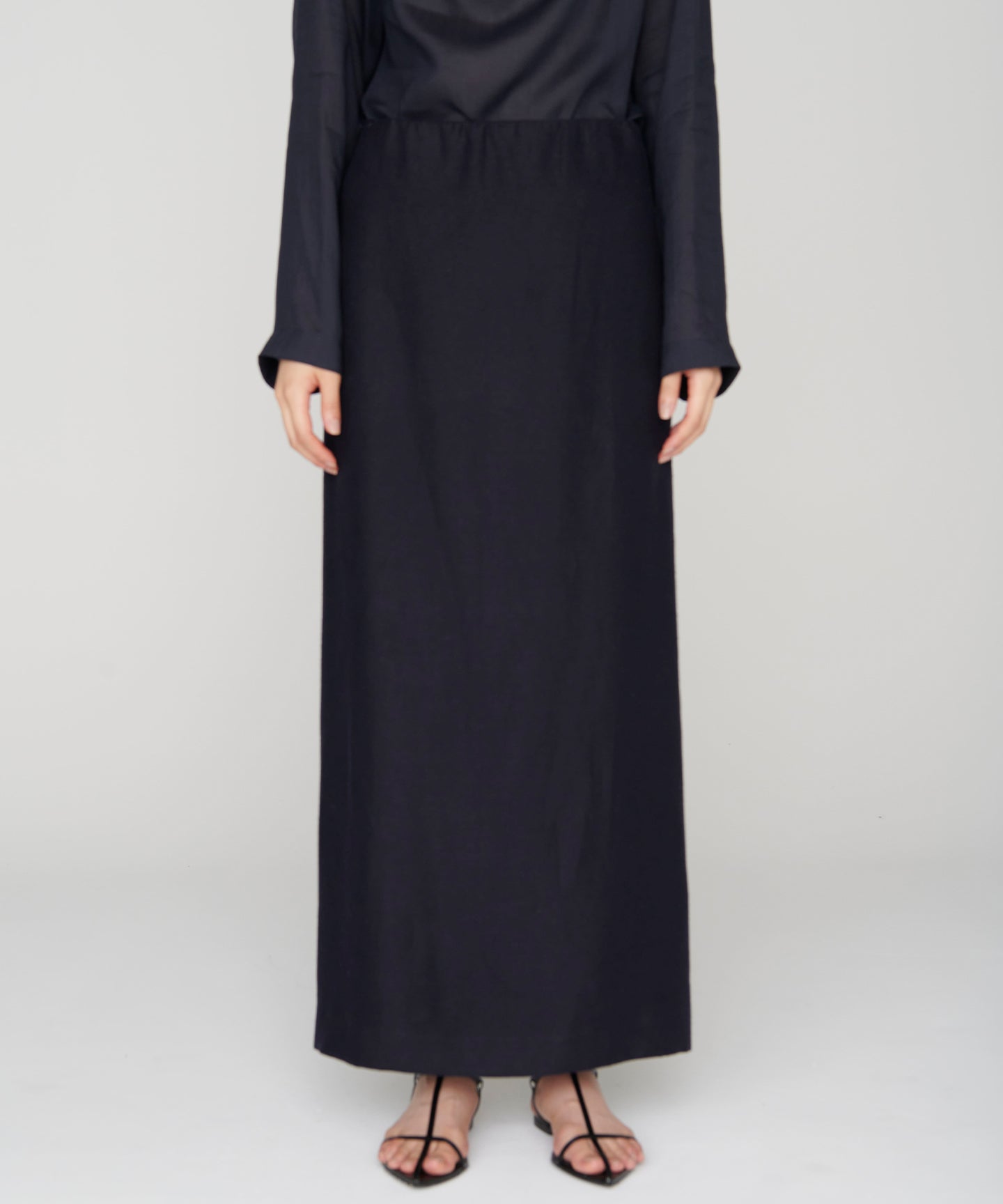 TSUTSUMUのパターンニングのIラインスカート。ウエストを繊細なギャザーですっきりと処理し、身体のラインを美しく見せることにこだわったマキシ丈です。