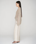 バックサテンリネンに起毛を加える事によりふくらみのある、柔らかさと心地よい風合いが特徴。リネン特有の通気性、吸湿性を持つ素材となっています。