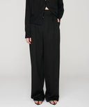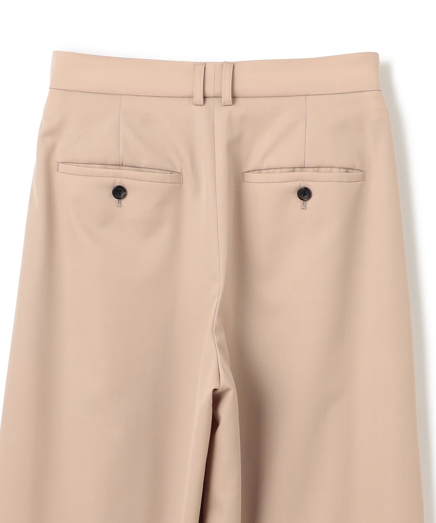 TSUTSUMUパターンニングのWタックパンツ。マーベルト仕立ての直線的なウエストラインから落ちる深めWタックのワイドストレートシルエット。ゆったり包み込むレッグラインは心地よくマニッシュな印象を持ちながらも女性らしい1着。