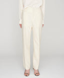 4枚接ぎにより、立体的ですっきりと美しいラインを追求したジャストレングスパンツ。
